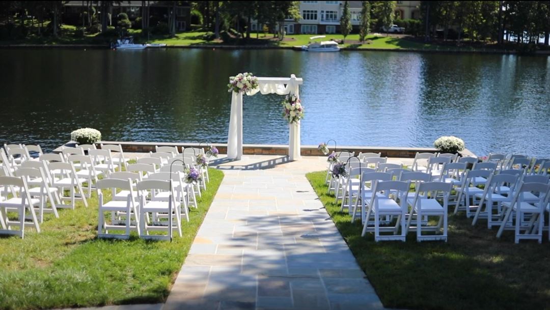 Our brand new events center seats 225 guests with a dance floor and 225 guests for a dinner or meeting event. An elegant private dressing suite is the perfect place to get ready for your big day. Our ceremony venue features a stunning lake front view for your romantic vow exchange. Inside, picture windows give your guests lake views no matter where they are seated. Elegant lighting and neutral colors allow for all types of decor. The Cove also features a state of the art audio visual set up for any videos or pictures you'd like to display.