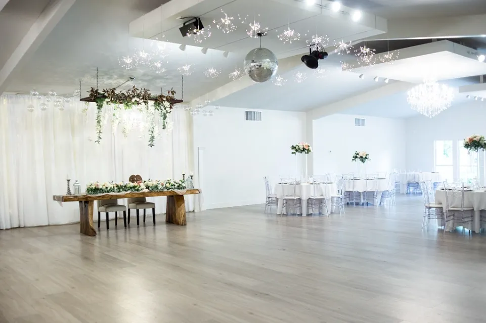 We also offer an indoor ballroom with chandeliers for a Weddings, Quincenera's, corporate events, and more. Our grounds and staff are available to make your event unforgettable. Contact us or visit our website for more information!