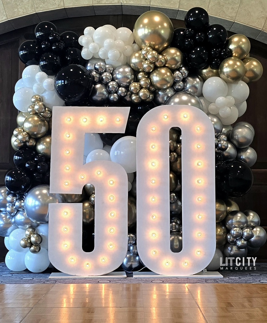 Show stoppers! That's how I describe our marquees. With out unique custom design style that is classy and sleek and our 4.5 ft tall we stand out from the competition and in any event. In addition to our regular marquees we also offer "Mini Marquees", stacked setups, and many marquee shapes, symbols to match many themes, collor marquees, uplights, as well as balloon services. We cater to all kind of events, from backyard parties to weddings and corporate events. Can't wait to hear what you have in mind and how can help you get LIT.