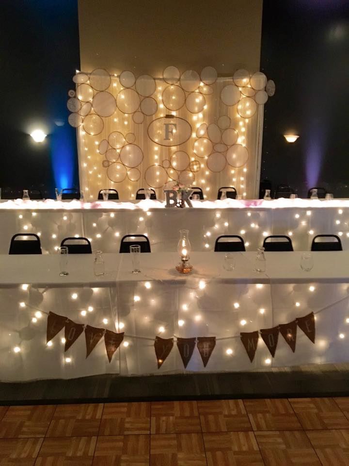 The reception hall can be set up to your fit all of your needs. With an optional dividing wall, you can use the room for smaller receptions, or split the room for having your wedding on one side and reception on the other, or without the wall. The possibilities are endless.