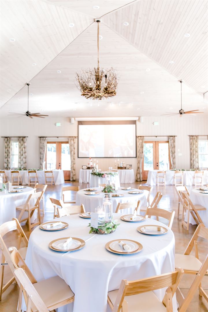 Equipped with a sound system, underwater lighting and fountain water features, this site is a perfect blend of nature and ingenuity. Our newest ceremony site is surrounding by pines with a cedar arbor and offers a complete nature friendly location. For a sophisticated rustic ambiance, Sandy Creek offers a multilevel reception barn with indoor and outdoor seating, heating and air conditioning, caterer’s kitchen, 2 bars and large screen televisions. For a more contemporary setting, our newly constructed convention center offers the same amenities and seats nearly 250, complete with additional covered outdoor seating for 150 guests. The west wall, overlooking the lake and island vista is equipped with store front full view roll up doors to join indoor and outdoor guests. For the ultimate wedding, combine three venues for a lifelong memory.