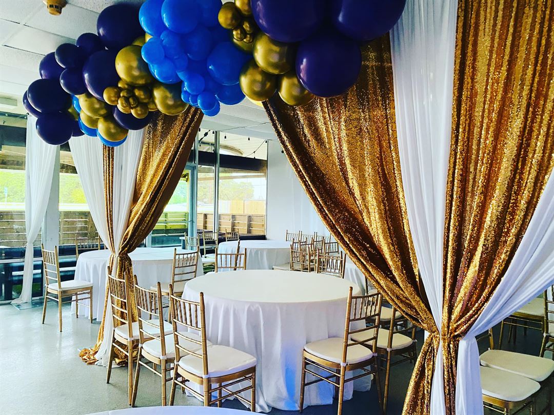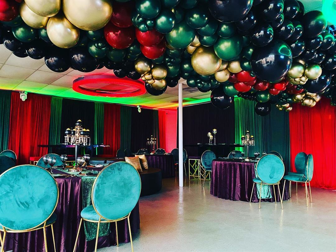 My Favorite Events is a venue space like no other. With 3 rooms in 1 and 2000 square feet that includes 2 restrooms, a large front open space with stage, amazing light show and sheer drapes all around, separate lounge area with plush seating with a bar, ambiance lighting and velvet walls, blue tooth speaker system, separate arcade with prizes, kitchenette, silver glittered floors, outdoor patio with lights and scrolling marquee sign for your event and ample parking.