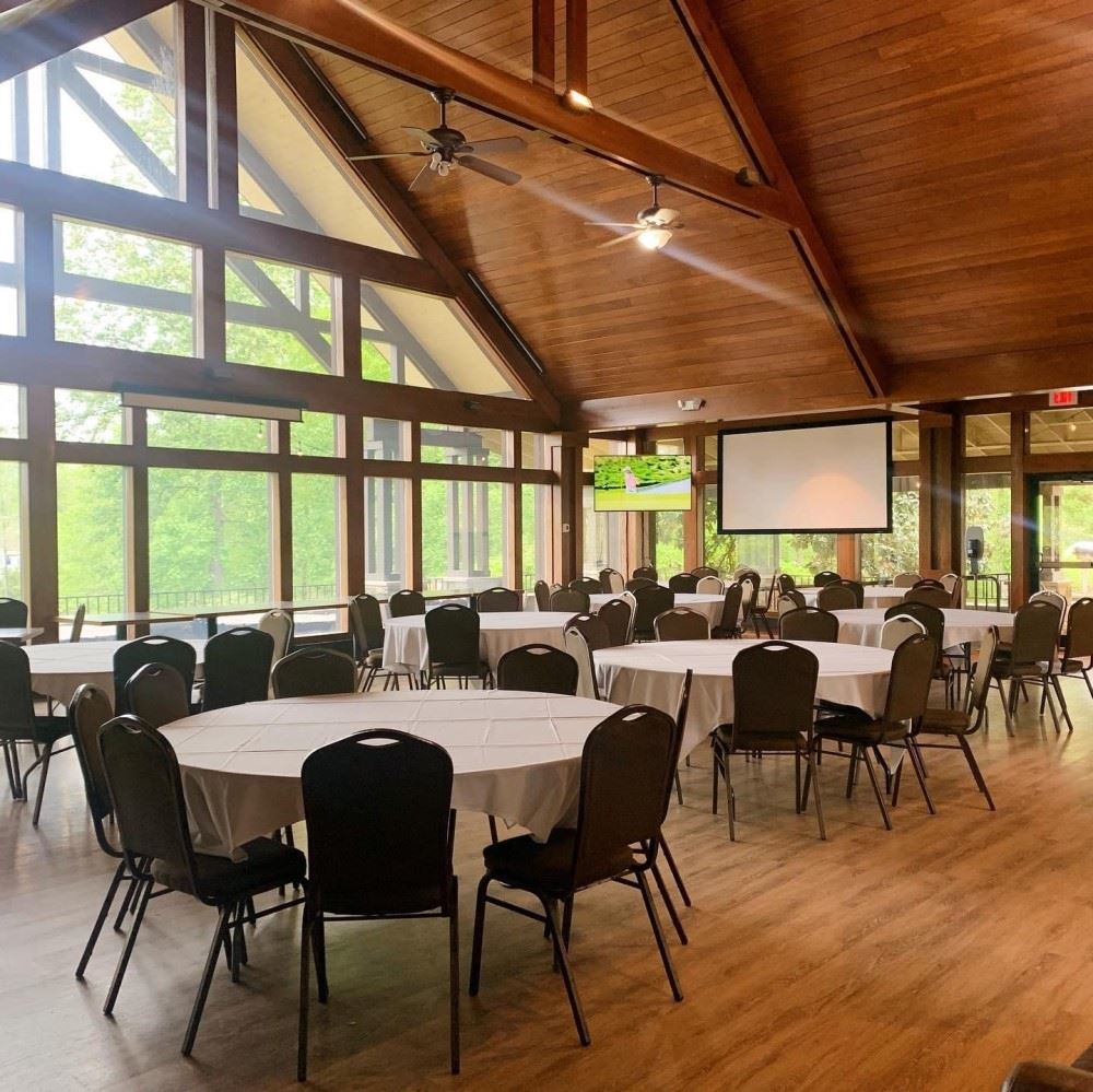 Augustine Golf Club offers a beautiful Chalet-style clubhouse for weddings & special events. The clubhouse features floor-to-ceiling windows, a stone veranda, and beautiful views of the pristine golf course.