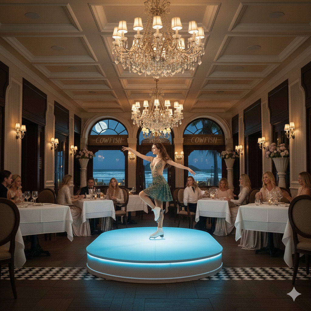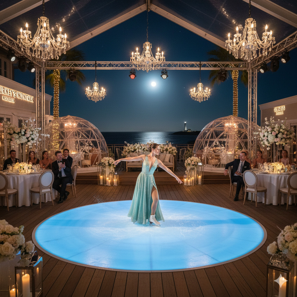 Using portable synthetic ice, I perform indoors or outdoors, in any environment, on ice sized specifically to your space. Each experience is tailored to the tone of the event, whether as a refined, atmospheric presence or a featured moment woven seamlessly into the evening.