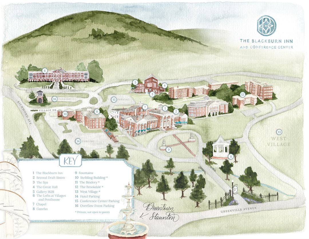 The Blackburn Inn is the perfect location for your next meeting, wedding, or special event, offering multiple spaces including The Penthouse with a rooftop patio overlooking downtown Staunton, our new Gallery 1828 and Great Hall venues within the Conference Center, the Grand Tent, our one-of-a-kind fountain garden, and our beautiful Gazebo.