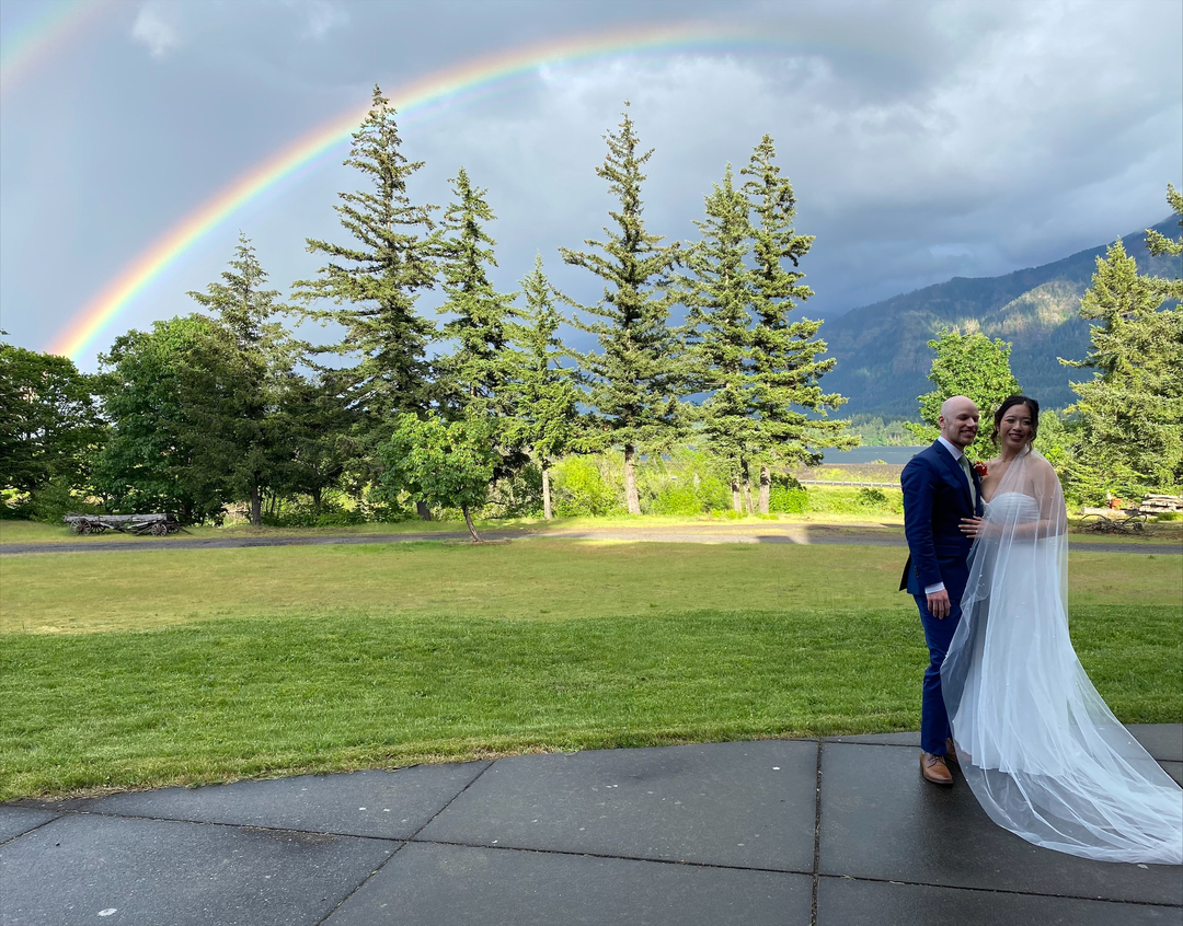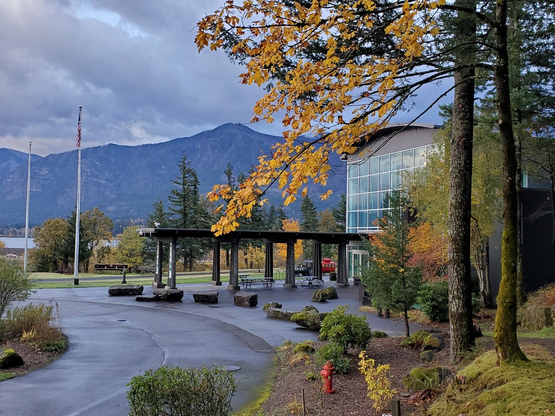 Floor to ceiling Windows with a view of the both The Columbia & Wind River.