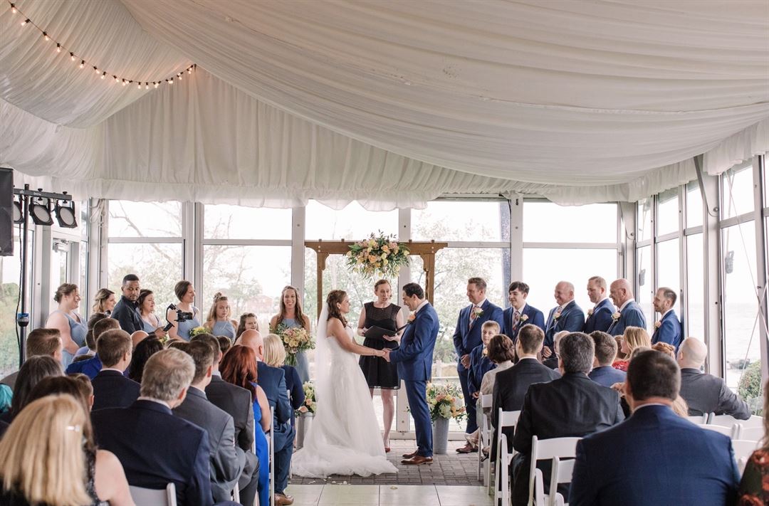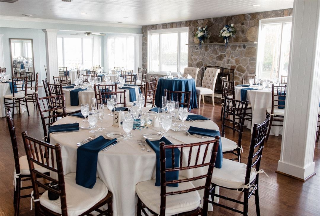 Located at the Queen Anne Marina on beautiful Kent Island, we’re just a short drive from Baltimore, Washington and Annapolis, but we feel a world away from the rushed pace of the city. With beautiful gardens, grassy lawns, a private beach and tented oversized pavilion, we can comfortably accommodate up to 220 guests. Our dining room offers beautiful panoramic views of the Chesapeake Bay, and if the weather should become a little chilly, your guests can warm up by our cozy fireplace.