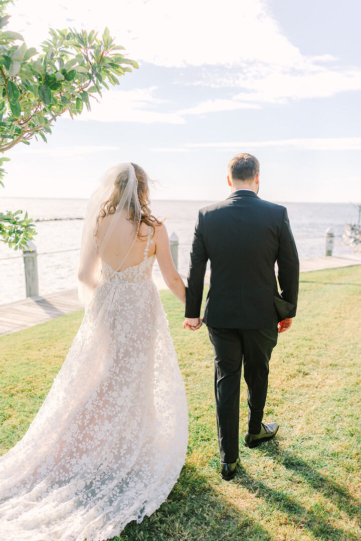 The venue offers stunning views of the Chesapeake Bay and Bay Bridge, with indoor and outdoor spaces. The glass reception area, lawn, and small beach create spectacular photo opportunities. To see more, check out the gallery.