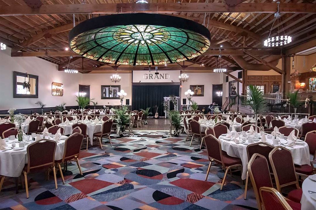 The Grand Banquet Hall is located just a couple blocks from the St. Croix River in historic downtown Stillwater, MN! Our ballroom features beautiful stained glass decor, space for up to 350 guests, a generous dance floor and a very long stunning antique bar.