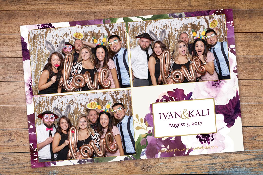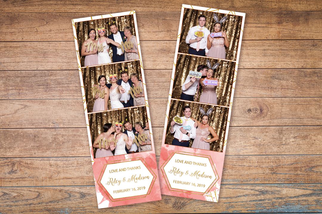 It's a modern twist to the traditional photo booth. It’s an open air design, so that the whole party can share in the fun. It has a super slick touch screen, built with professional photo equipment, and it prints quality photo strips in seconds. We have several backdrops to choose from and we’ll help you with a custom graphic for the prints. And of course props, you can't forget the props!