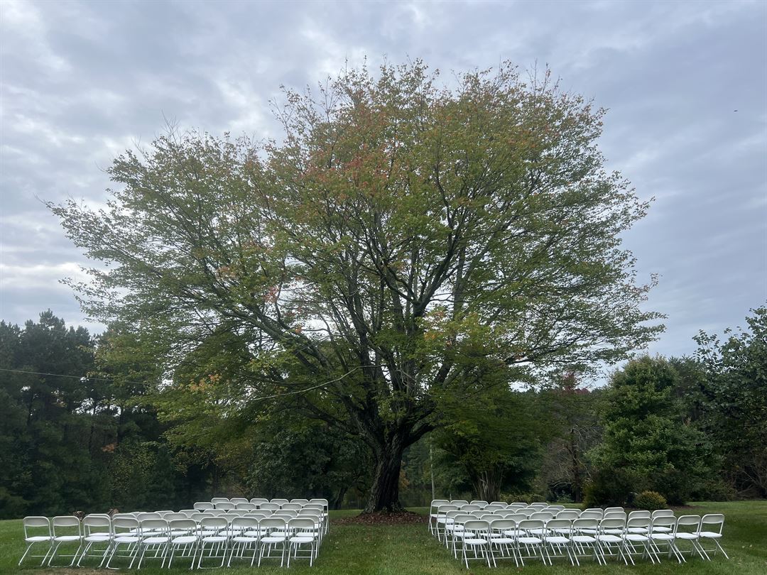 Beautifully situated at the top of a hill overlooking a lake on approximately 450 acres tree farm and wildlife preserve. The Longhouse building has a large hall that can be used in a variety of ways. It's cathedral ceiling and large stone hearth make it both beautifully spacious and warm and inviting. There is also a fully equipped kitchen, a balcony that over looks the hall, and rooms for both the bride and groom to get ready in.