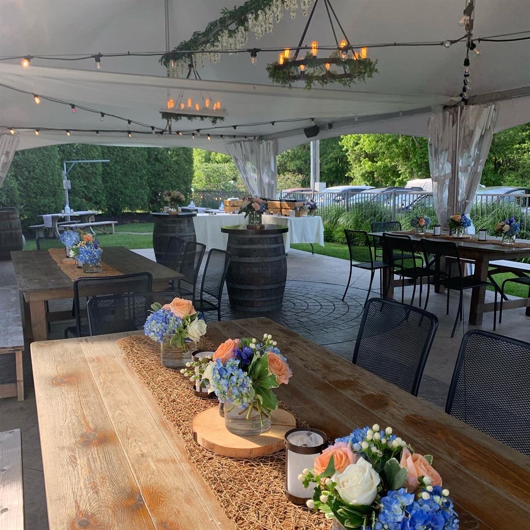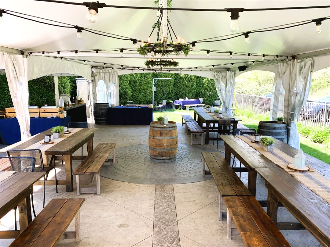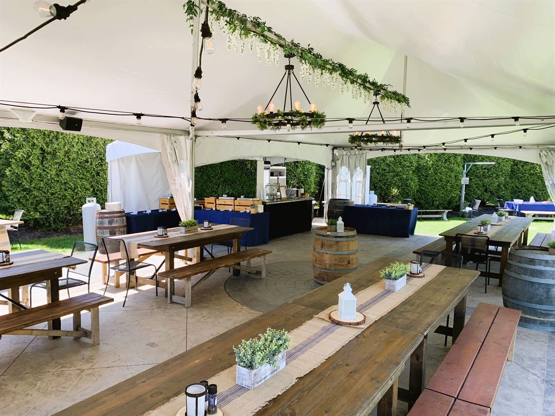 Our Dog Watch Mystic property located in Stonington, CT has a beautiful 1,000 sq ft event tent available to rent for private parties, April 30 through November 30. During the off season, our cozy inside dining room and bar with fireplace are available to rent for daytime and weeknight private parties. Full property rental available on a case-by-case basis. Outside food and beverage is not permitted.