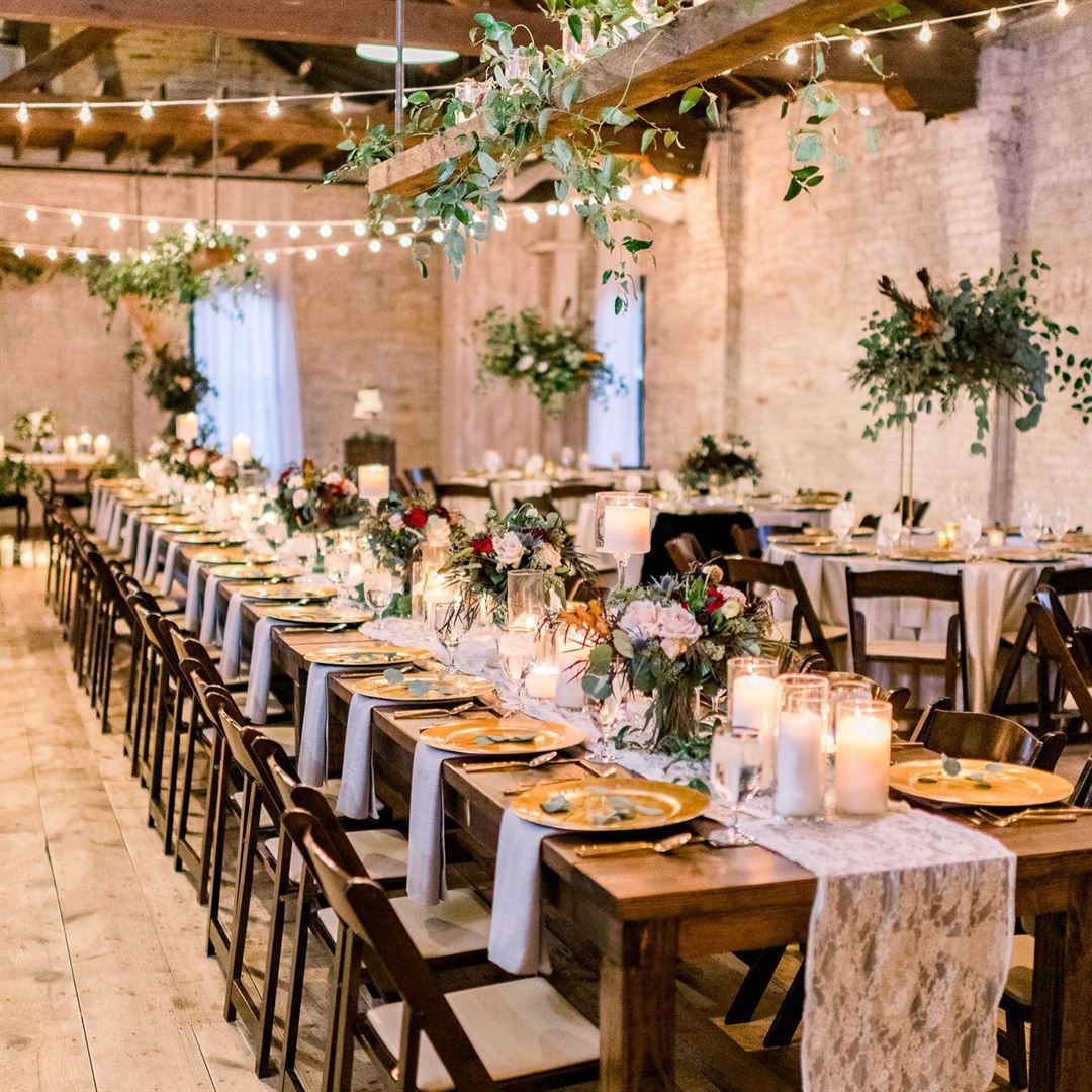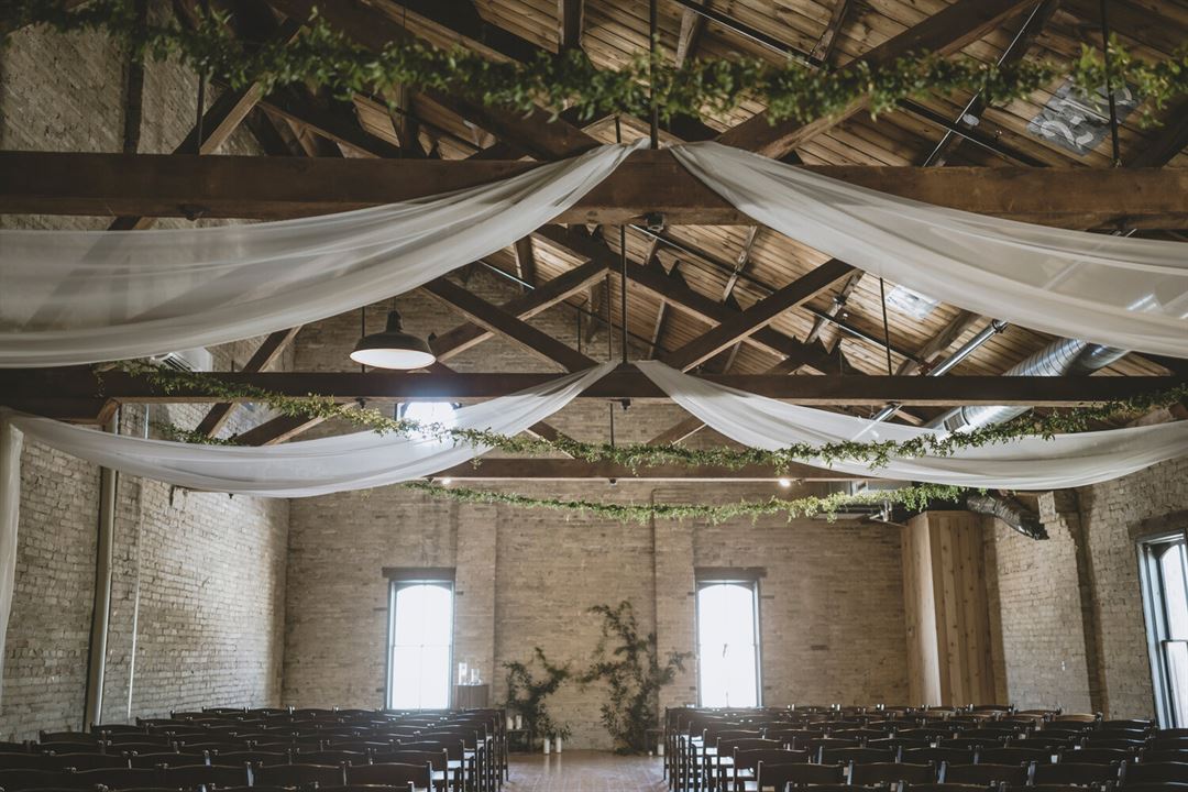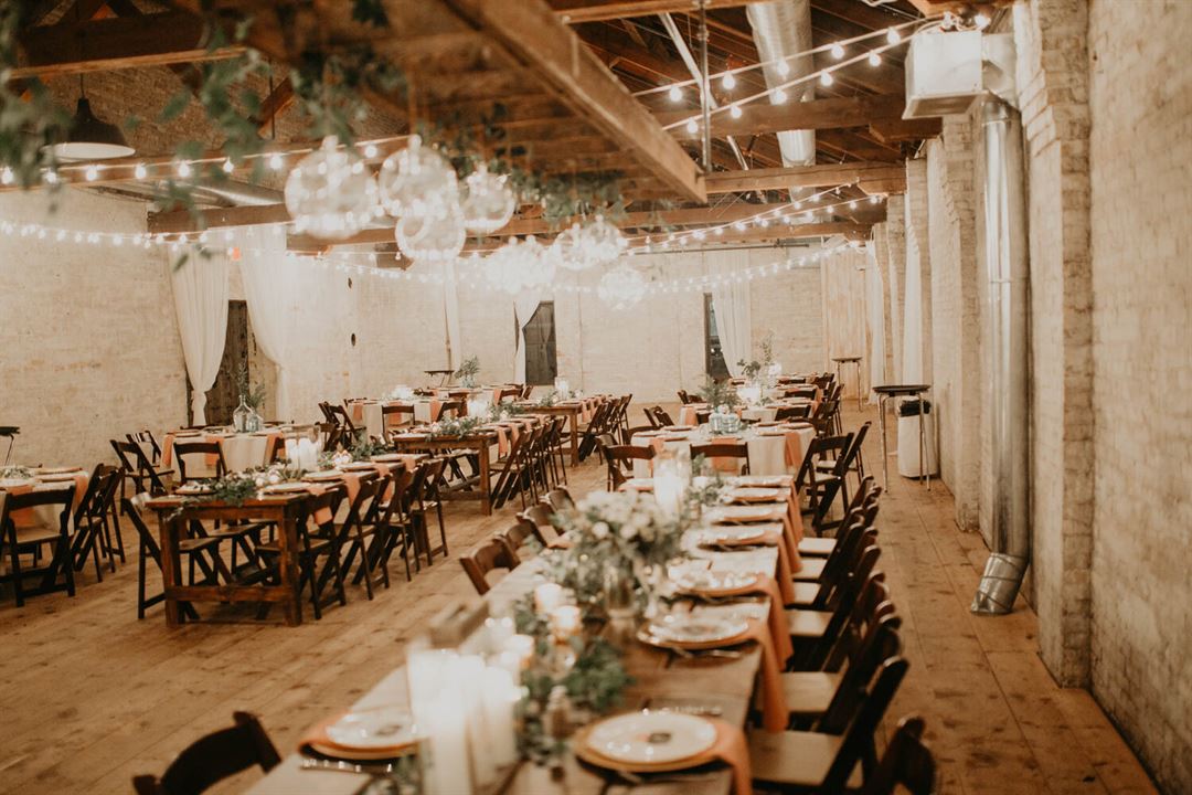 A former tobacco warehouse, The Lageret is one of the most sought-after wedding and event venues in the Madison area. Filled with rustic charm, the large, open space lends itself to be decorated in such a way to imbue a range of themes and feelings.