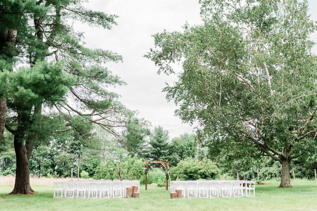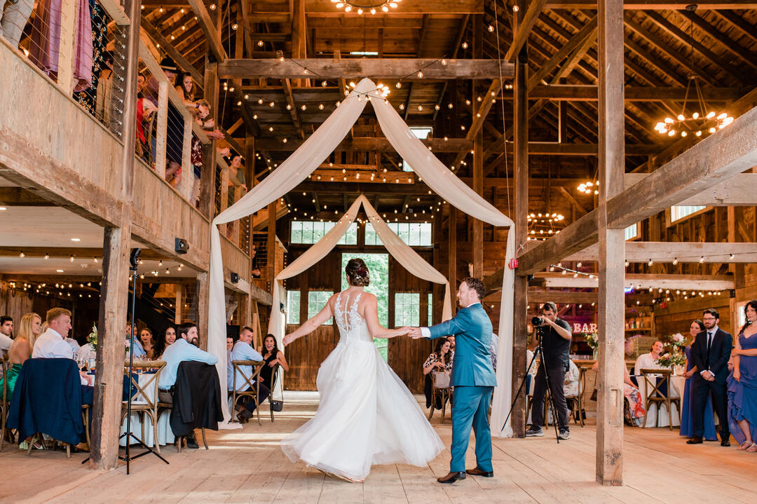 This old cow barn is almost 200 years old. Inside there is a full PA sound system, beautiful Edison bulb chandeliers, a rock-maple live-edge bar top, two bathrooms, massive barn doors on each end, and a grand entrance staircase. The barn holds up to 200 people and is big enough that you probably don't have to rent a tent for your events, a major benefit and money saver! In the event of rain, you can use the barn as a ceremony and reception space.