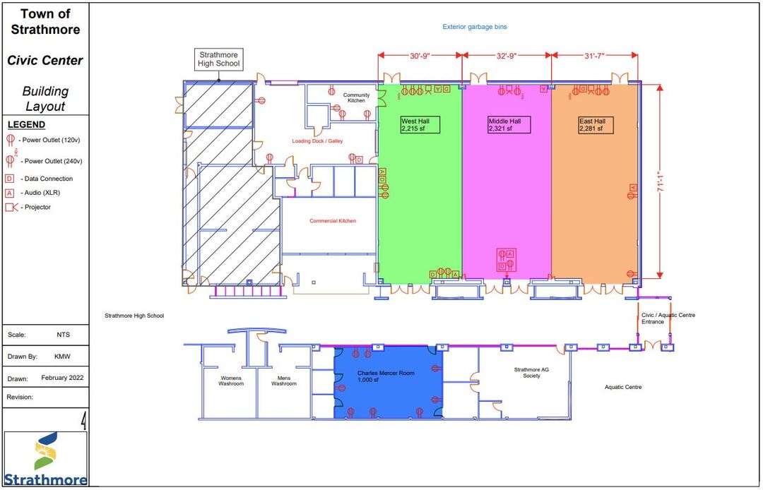 The Strathmore Centennial Civic Centre is a versatile building available for a wide variety of events such as trade shows, seminars, meetings, weddings, birthday parties and banquets. The 6,700 sq. ft. large hall can be split into 3 separate spaces, the West Hall, Middle Hall, and East Hall, to accommodate different sized gatherings.
