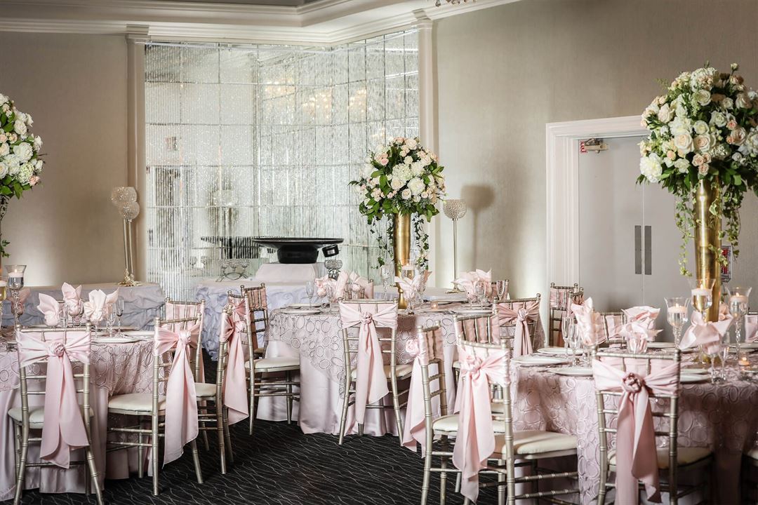 Imagine your guests entering the lobby, featuring 25-foot ceilings and an incredible double staircase. Then they step into the grand ballroom with glittering chandeliers, elegant table settings and a large dance floor. Right away, your guests will know they’re about to experience something special.