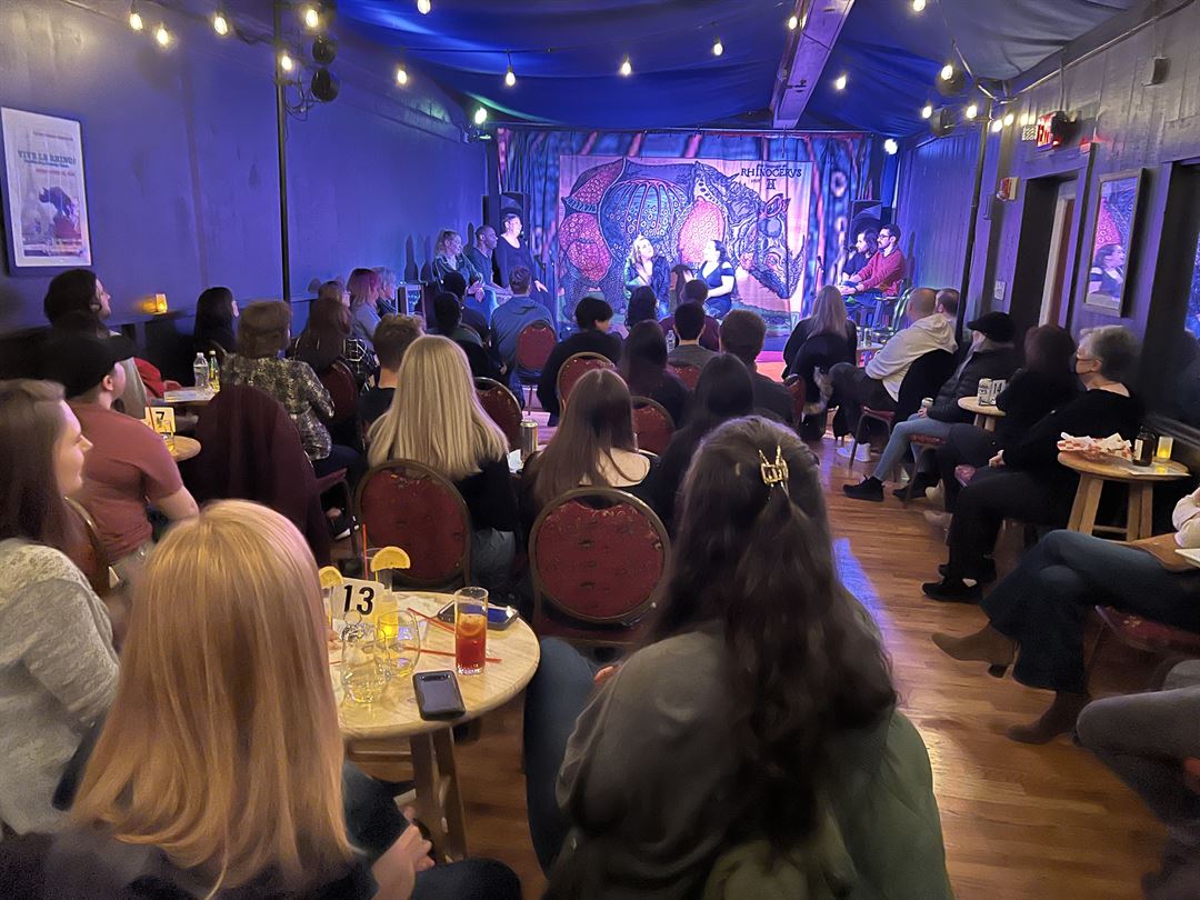 We are a unique and beautiful comedy club in Suffern NY, right over the Jersey border. We are Rhino Comedy! You can check out our website and ask questions there too. We can host parties and events and have a wine/beer bar, stage, lights, sound system and moveable tables and chairs. We are on the 2nd floor and ready to host your party!