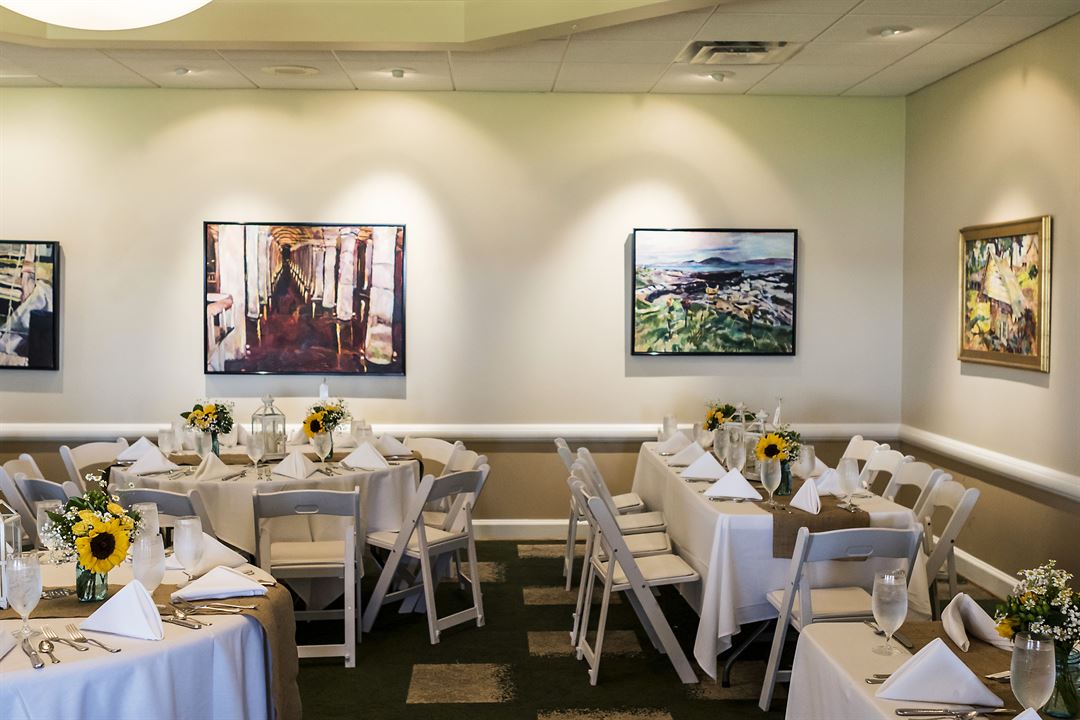 The Cedar Point Clubhouse is the perfect location for your wedding, party, business meeting, fundraiser, anniversary party or whatever the occasion may be. Our Clubhouse can accommodate up to 140 seated guests or up to 200 people for a large cocktail function or your smallest intimate gathering during the daytime hours or evening hours. The clubhouse and surrounding greens are available with a breathtaking view of the Nansemond River. We can also accommodate larger parties by setting up tents on the greens overlooking the river.`