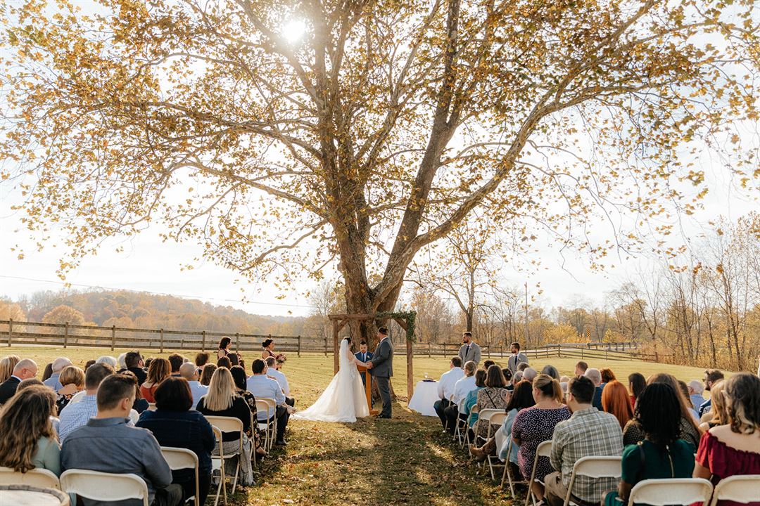 We’re located in beautiful Hocking Hills, Ohio on a private 200 acre farm. Breathtaking scenery includes a pond, meadow and of course, the hills! Not only do we offer complete wedding packages we also provide onsite lodging for you and your guests.