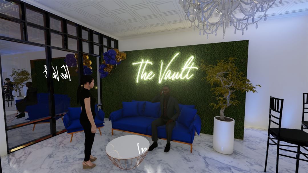 The Vault Event Center - Suisun offers an open floor plan, where you can create just about anything. It is an elegant and modern space with high ceiling chandeliers and decorative ceiling panels. Includes indoor and outdoor options.