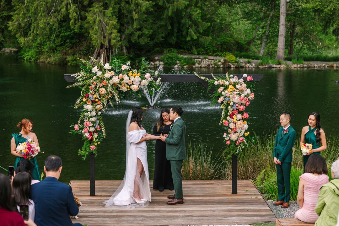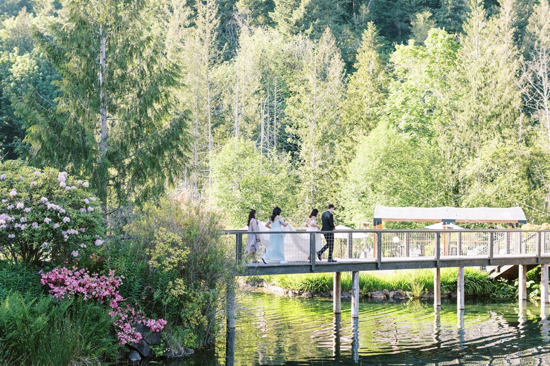 Gray Bridge by Landmark Event Co. is a scenic outdoor venue in Sultan, WA, just an hour from Seattle. Surrounded by lush evergreen trees, it’s ideal for a romantic garden wedding, with space for up to 225 seated guests and 500 standing. The tranquil forest setting adds a magical touch to your day.