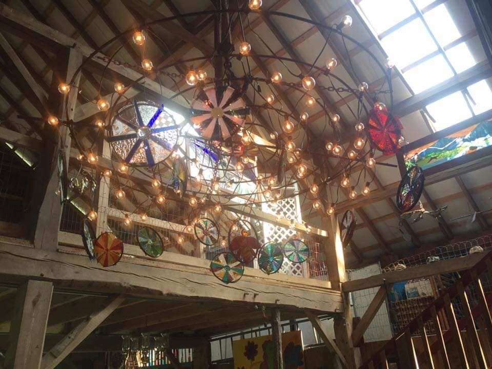 We have a licensed kitchen in a scenic and beautiful natural setting. A pond and several artistic outbuildings, an old-style walking bridge and distant woods make a beautiful backdrop for weddings and parties.