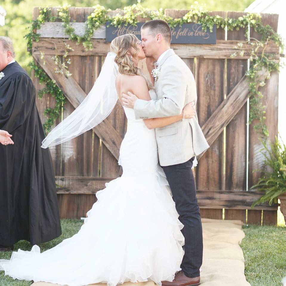 The larger 1940's event barn serves up to 200 seated guests with handicap accessible bathrooms, a catering kitchen, and sliding barn doors that open to spacious green grasses for expanded indoor/outdoor venue enjoyment. The décor is rustic chic to vintage glam and part of the comprehensive service packaging. The remaining 2 barns, built in the early to mid 1800's, are of a similar and unique style with especially beautiful structures. Our rental package is unique in that we host your event providing all venue needs to include tables, chairs, linens, dinnerware, wedding and reception décor, day of event support and coordination as well as other available options to include a restored '57 Chevy that stands ready to deliver the bride to the ceremony or as a prop for photos!
