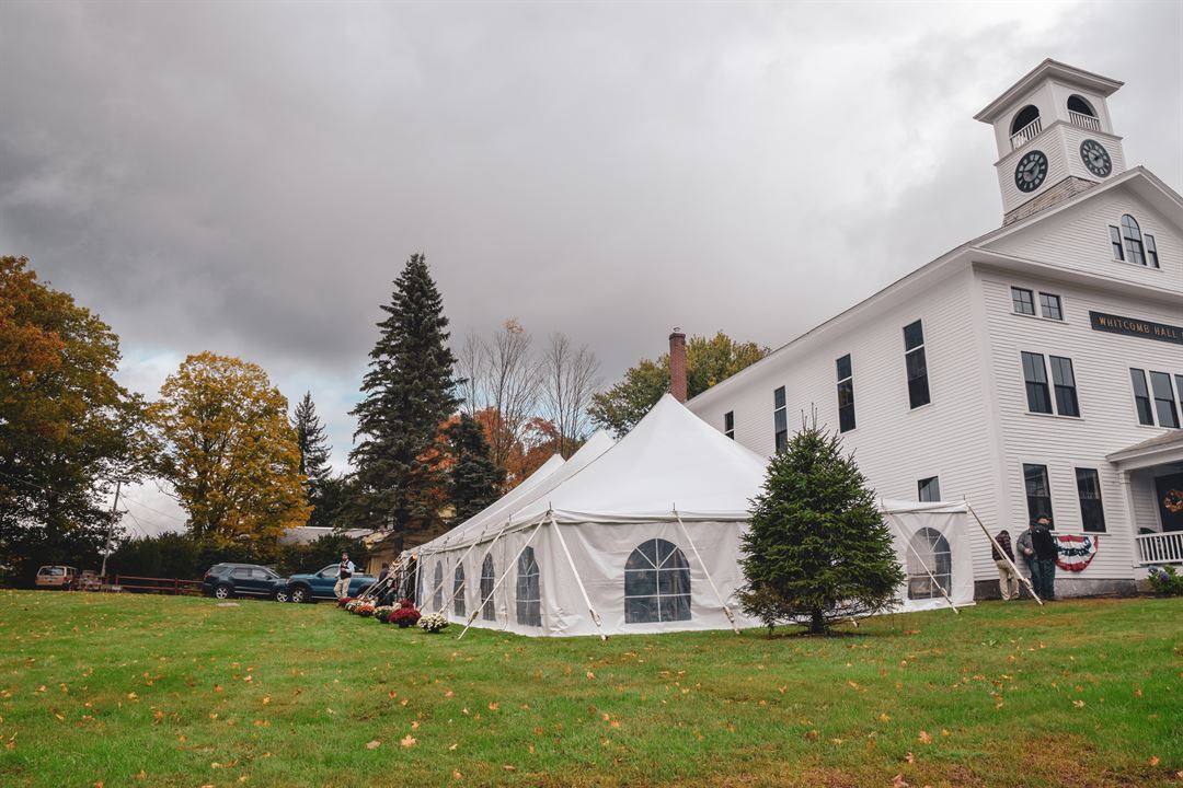 Whitcomb Hall offers a commercial kitchen with a 10 burner stove/oven, tables and chairs, and is ADA compliant. There also is a large lawn to hold ceremonies, and a Bed and Breakfast right next door. The hall is located on a charming New England Main Street lined with ornamental streetlights that lead you to a picturesque covered bridge over the Ashuelot River.