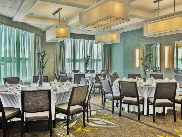 The Mariner Ballroom offers 3,600 square feet of versatile space, perfect for weddings and large meetings. It can also be divided into three smaller rooms for added flexibility. This elegant venue ensures a memorable experience for any occasion.