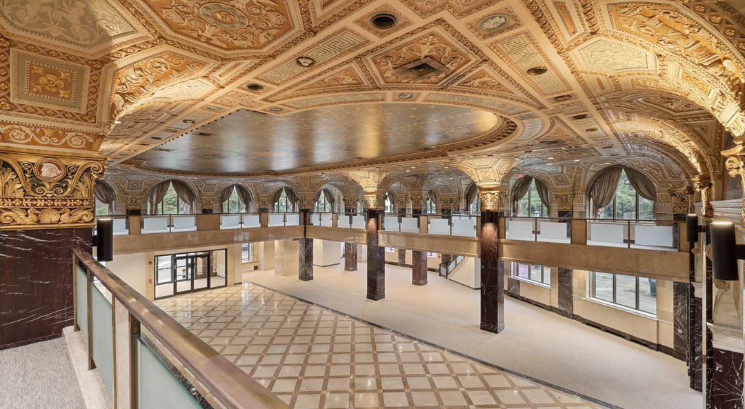 Palladian Hall is part of The Treasury, a space that utilizes the Onondaga County Savings Bank which is part of the National Register of Historical Places. This unparalleled area is built on the foundation of history and pays homage to its roots. The elaborate design style is carried through to Palladian Hall, an extraordinary and elegant on-site event space. Overlooking Clinton Square in the heart of downtown Syracuse, Palladian Hall is the unique event space you have been looking for. Host any private event in this grand ballroom featuring a mezzanine, ornate walls, and vaulted ceilings that will take your guests’ breath away.