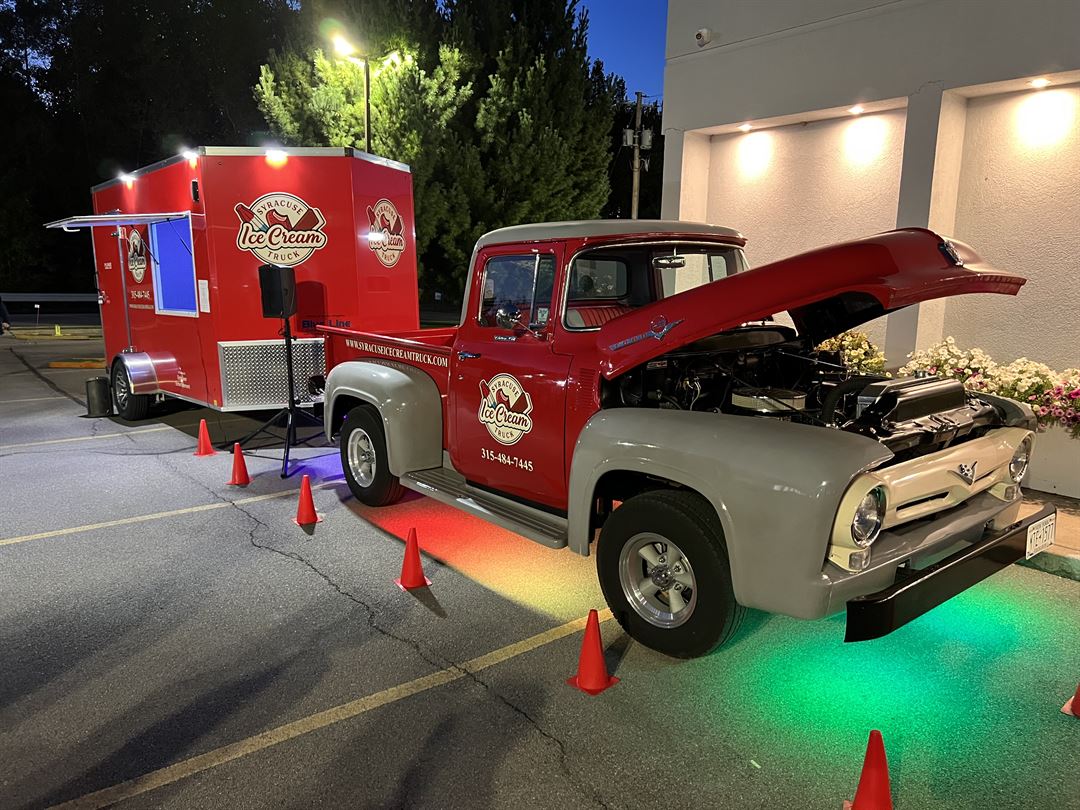 Let our 1956 Ford fully restored Pickup truck with custom ice cream trailer make your event one to remember. Many different packages to choose from. Depending on the package chosen we bring the old truck and trailer, music, yard games, 9 hole mini golf, bounce house, and most of all Ice cream. We serve prepackaged fast and easy favorites like Sponge Bob, Spiderman, Vanilla ice cream sandwiches, Strawberry Shortcake bars, Oreos and Cream Bars, Snickers, Twix and a few others. We can show up and pass out ice cream or stay for hours and set up the full entertainment package. Our truck has lots of cool LED lighting as well.