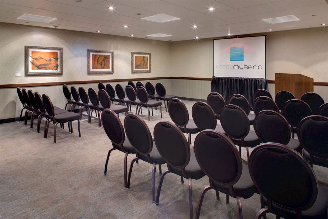 Hotel Murano showcases a unique collection of glass art made in the 21st century. In addition, our hotel offers 319 rooms, a day spa, salon, a Well + Fit program (along with a state of the art fitness center), a business center open 24/7, valet parking, complimentary wi-fi, and food and drink options to keep your guests nourished and inspired.