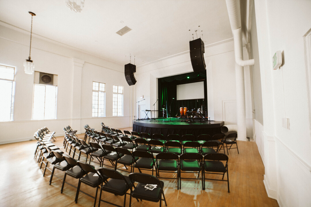 A versatile and dynamic space designed to elevate your event. Boasting a capacity of 200 seated or 300 standing guests, this historic room is equipped with state-of-the-art QSC Line array speakers, a custom light system.