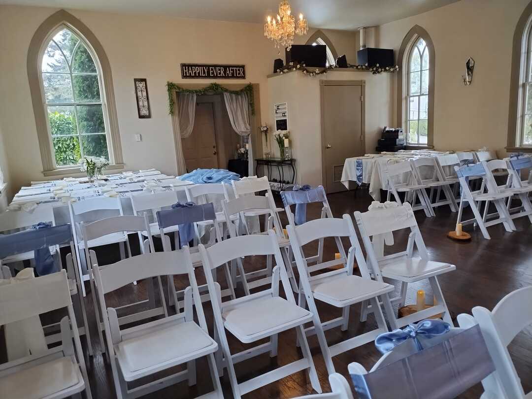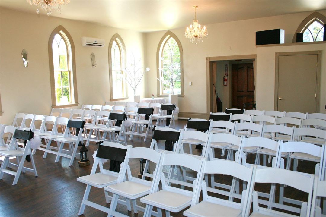 Located in Tacoma, the Ruston Chapel provides a romantic and intimate setting for your special event. The gothic style arched windows, elegant chandeliers and a glowing fireplace gives it the classic charm of yesteryear. Just blocks away, you can capture your memories with world class photography settings such as the rose gardens in Point Defiance Park or vantage points that overlook the breathtaking Commencement Bay.