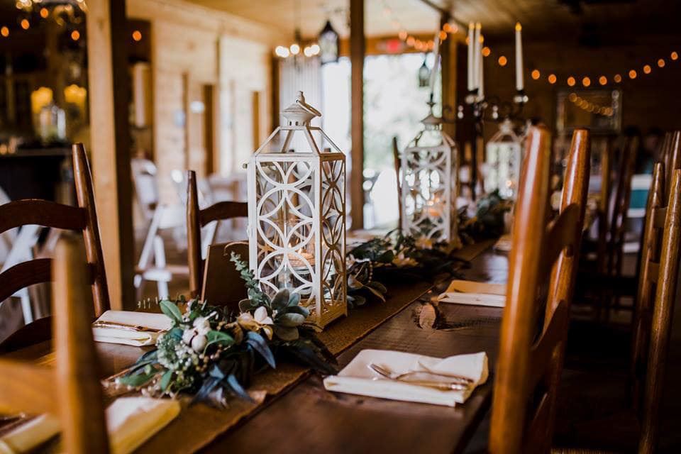We provide all tables, chairs, arbor decorations, linens, plates, glasses, silverware, napkins, centerpieces for all guest tables. We have nice farm tables for the wedding party, and a large inventory of linens and decorations.