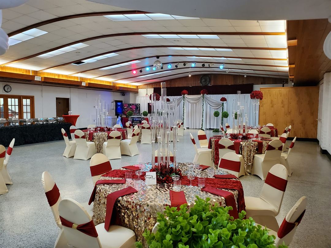 Banquet Hall Rental for Wedding Venues, Reunions, Events, Shows, etc are available year round. The Hall has a capacity of 200 with 3200 square feet.