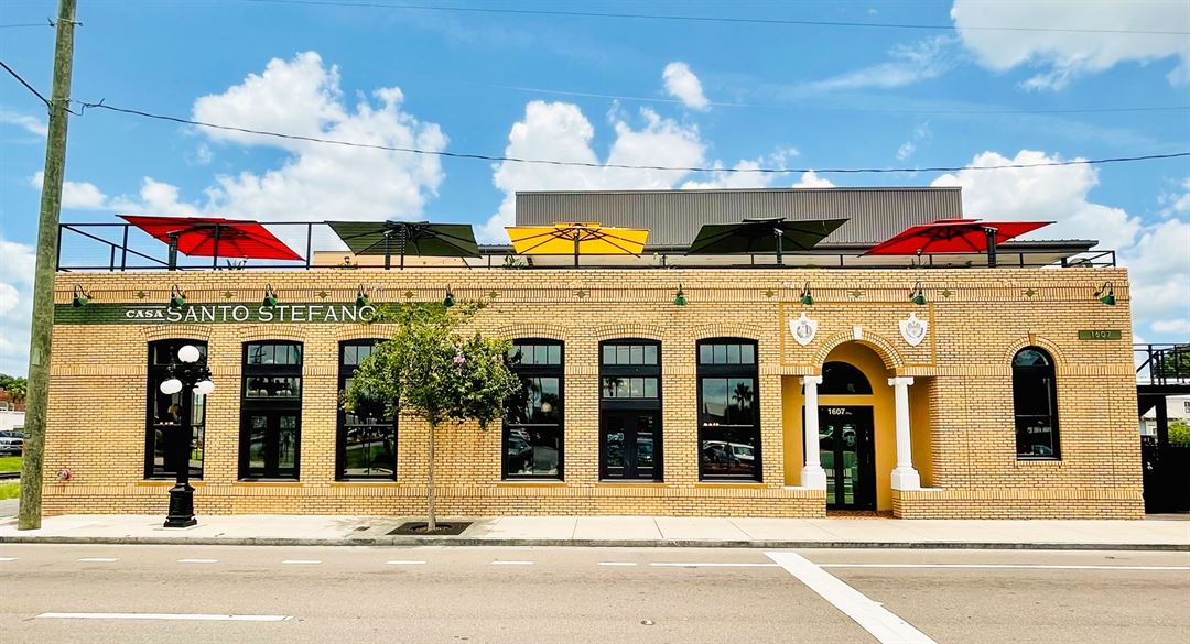 Enjoy Tampa’s beautiful weather and stunning sunset views of historic Ybor City at Santo’s Drinkeria, the rooftop indoor-outdoor gathering space above Casa Santo Stefano.