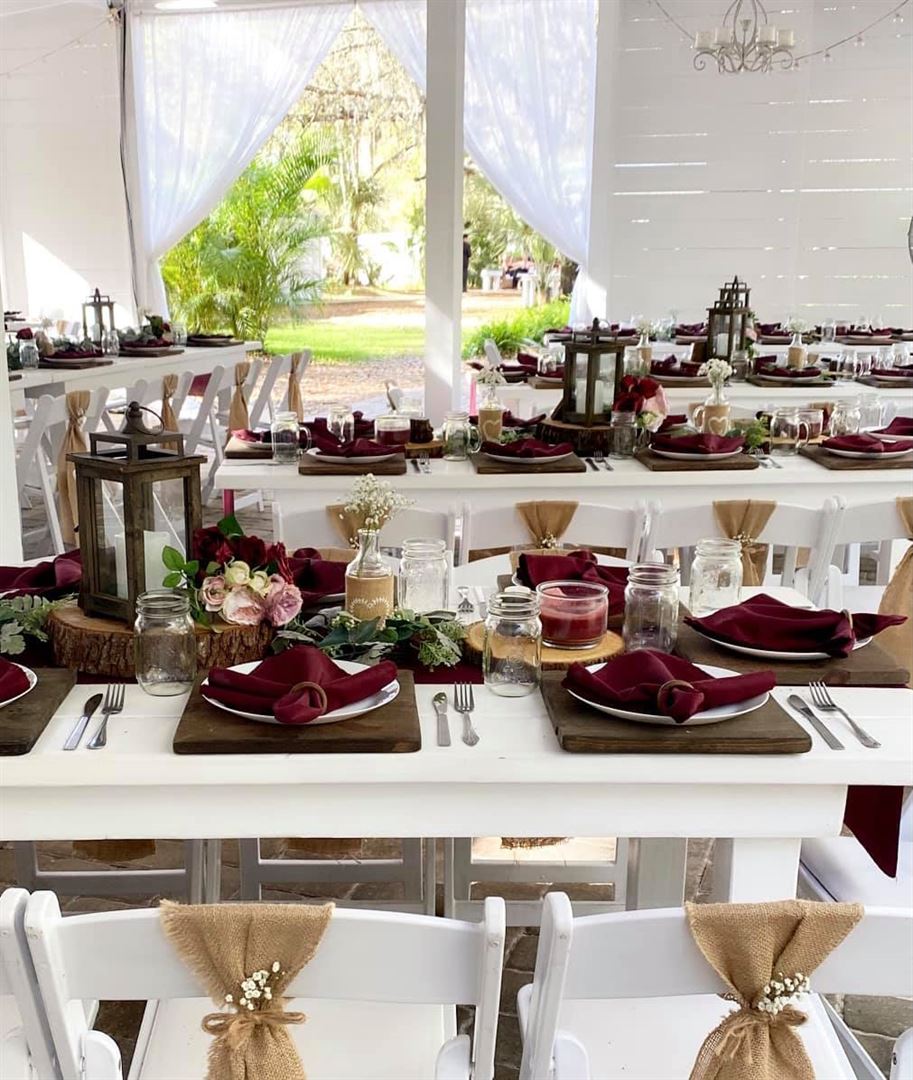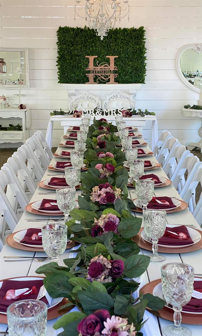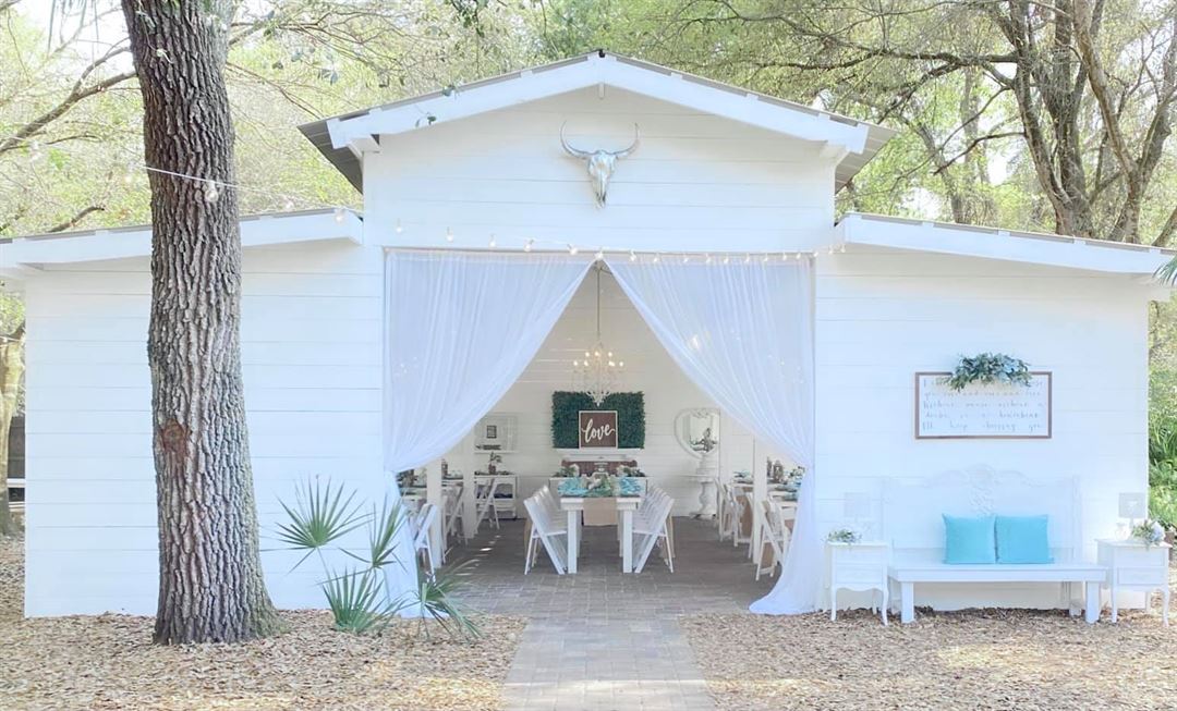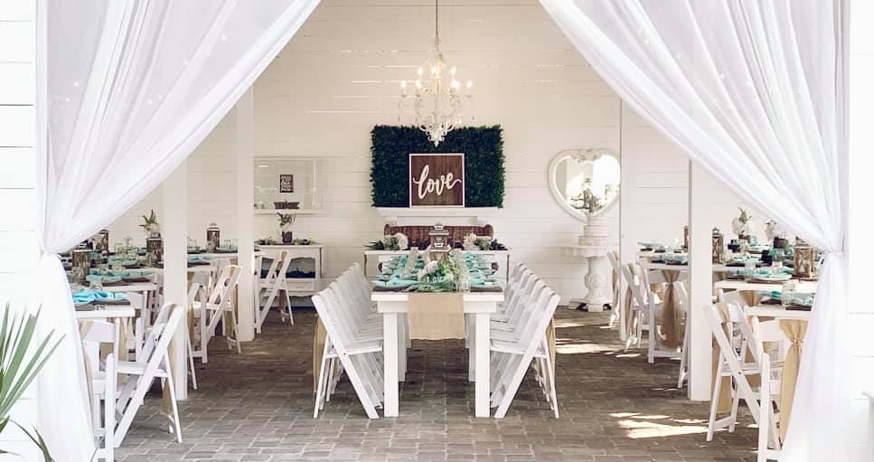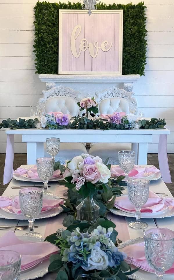 La Belle Amour has multiple sites on the property for your ceremony. You can choose from our beautiful outdoor covered chapel, our garden gazebo with a gorgeous white chandelier or a fantastic 100-year-old Oak tree with a beautiful heart that grew right in the middle of the trunk. You can choose garden chairs or rustic benches. There is a beautiful white washed barn for the dinner and a 20 x 80 ft paved party deck that is covered for bar area and dance floor. The brides quarter is a whole house designed specifically for all your needs complete with a beauty shop, full kitchen, private bathroom and living room for her and her bridal party to enjoy while getting ready. There is a grooms room for the groom and his groomsman. We can do any style of wedding you like black tie, vintage, rustic barn, country chic, garden, gazebo, princess style, or any theme you can imagine.