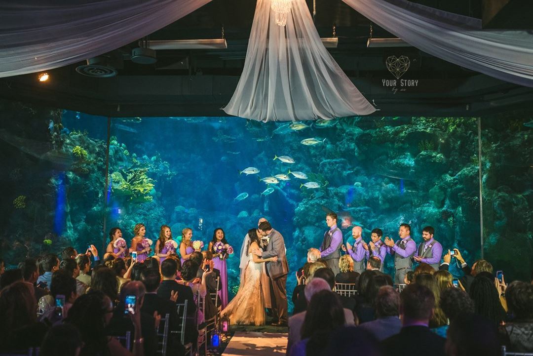 The Florida Aquarium provides a beautiful backdrop for a wedding or special event. I was recently the Maid of Honor in my best friends wedding and was able to help her through the entire planning of the event. We looked at a few places before ultimately deciding on the Florida Aquarium. She has always loves aquariums and thought it would provide a lovely backdrop for the ceremony. This ended up being more than true. The entire time she was greeted by guests telling her how beautiful she looked with the soft lighting and fish swimming by the entire time. They also enjoyed the fun atmosphere. During the cocktail hour guests were able to walk around the aquarium and check out all of the exhibits. For those people who came from out of town this was a special treat. It became part of their vacation experience. The environment set up the perfect scene for my friend. She liked the idea of a tropical beach but without the cheesy decorations and bright colors. She was able to go with a muted palate and under the sea feel. The food fit this theme perfectly, seafood was served but only in minor details. She did not want to go overboard. There was also a carving station and a pasta station during cocktail hour. The food was warm and tasty. We loved that the caterer was part of the package, so you did not have to go outside and spend your time researching separate caterers. We loved the entire staff, from her personal consultant to the head chef and background organizers. Everyone was great and friendly, although a bit hard to get a hold of sometimes. Overall, I would recommend this venue to anyone looking for a unique and beautiful site for a wedding.