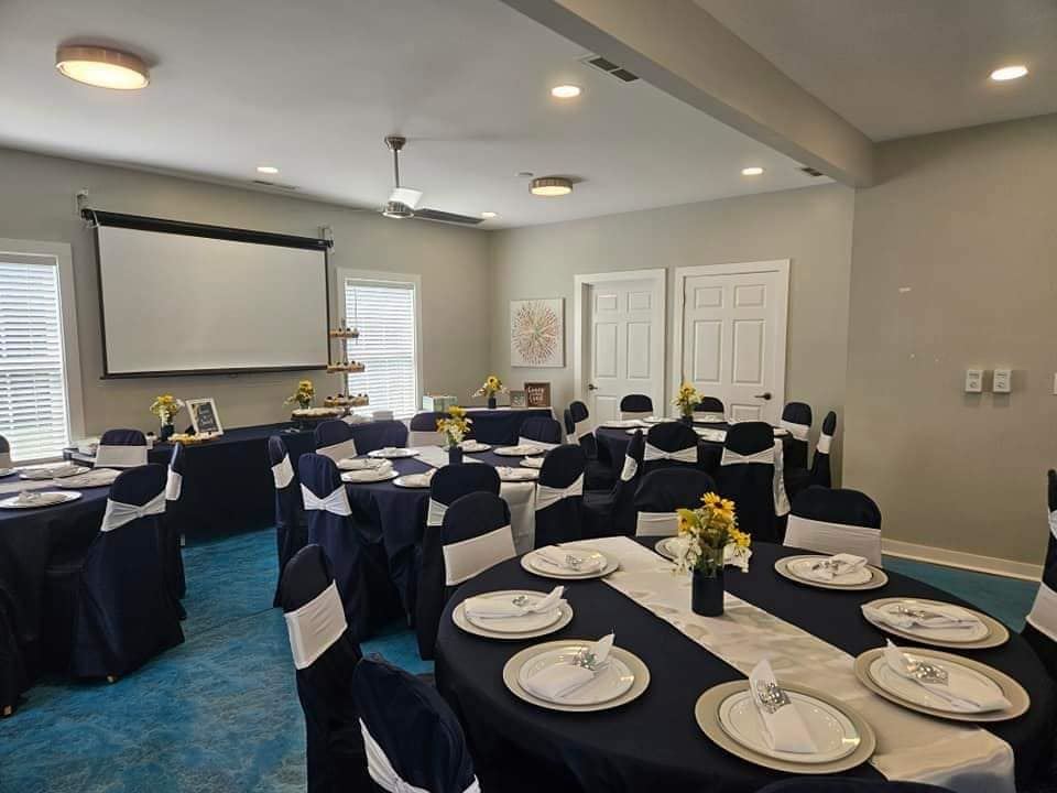 Enjoy our event center for your meeting. Then go fishing on the lake, explore the bourbon trail, or go golfing next door at Tanglewood Golf Course. Internet, a projector, and a variety of table/chair setups are provided. We have a small kitchenette on-site and a coffee maker to get you going and out to the lake! The land around the event space is included in the rental if you need a break for some games and activities.