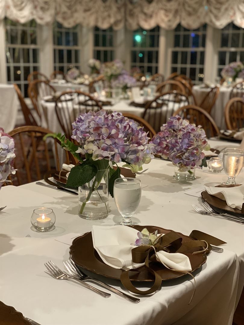 We have four locations to accommodate special events, meetings or celebrations. Our Main Dining room seats up to 60 guests and is located on the first floor of our main building. It’s large windows allow beautiful lighting to enter the room and give way to gorgeous views of our tree-lined meadows. The room is also accompanied by a large stone fireplace and mantle which lend to our rich history.