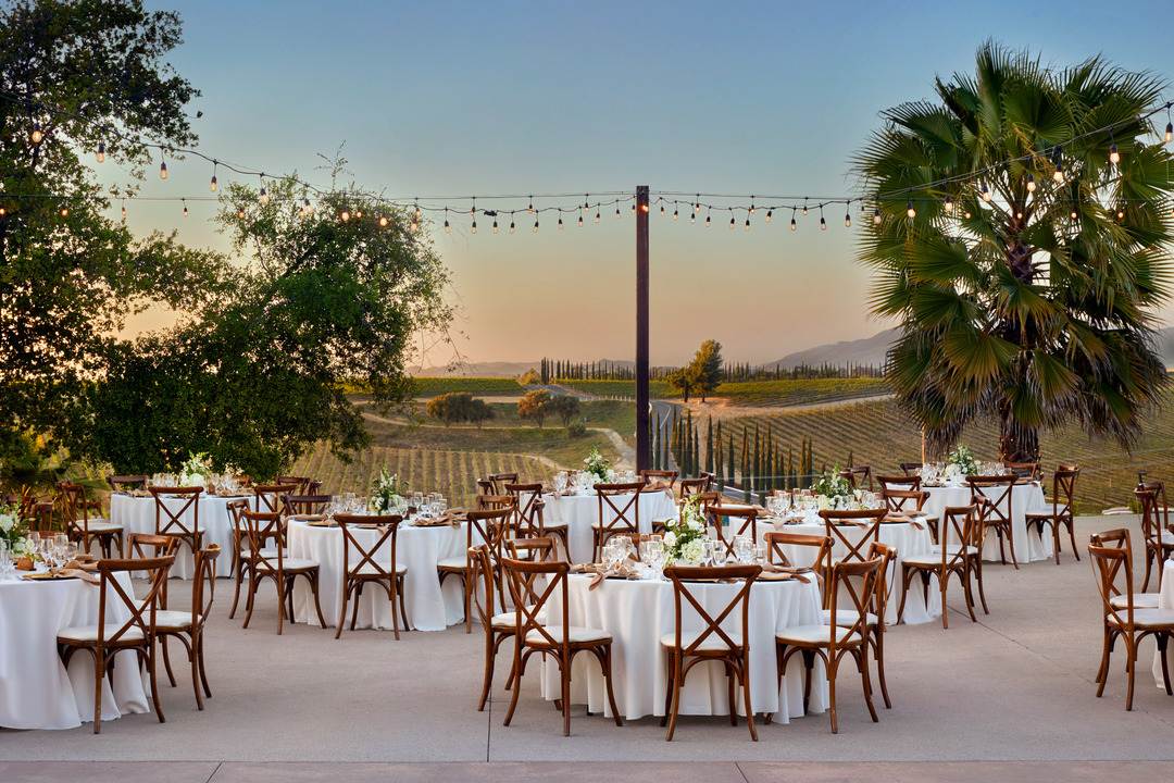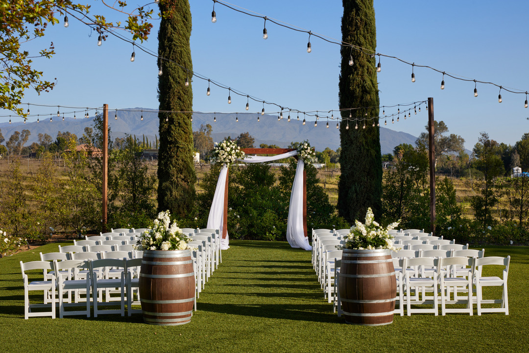 Capture memorable moments amidst the picturesque vines while your guests enjoy cocktail hour on the reception lawn. As evening falls, celebrate under the romantic glow of bistro lights and sparkling stars, creating cherished memories in the heart of Temecula Wine Valley.