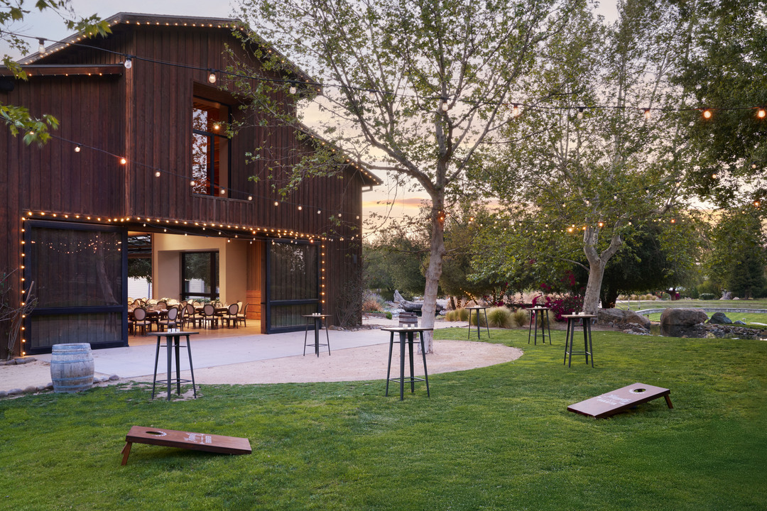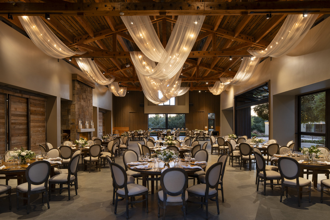 In the heart of world-famous SoCal wine country, this stunning ranch wedding venue impresses with lush green meadows and tranquil ponds, modern luxurious amenities, and a dressing suite that will make you wish you could move in! Enjoy an elegant reception in the rustic yet modern 'Carriage House,' featuring garage doors that open to the outdoors, panoramic window walls, beautiful draping with bistro lighting, a large built-in bar, and a cozy double-sided fireplace. Surrounded by meadows, ponds, and rolling hills, Galway Downs will spark your love affair with Southern California.