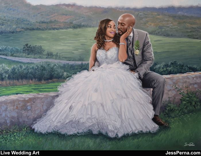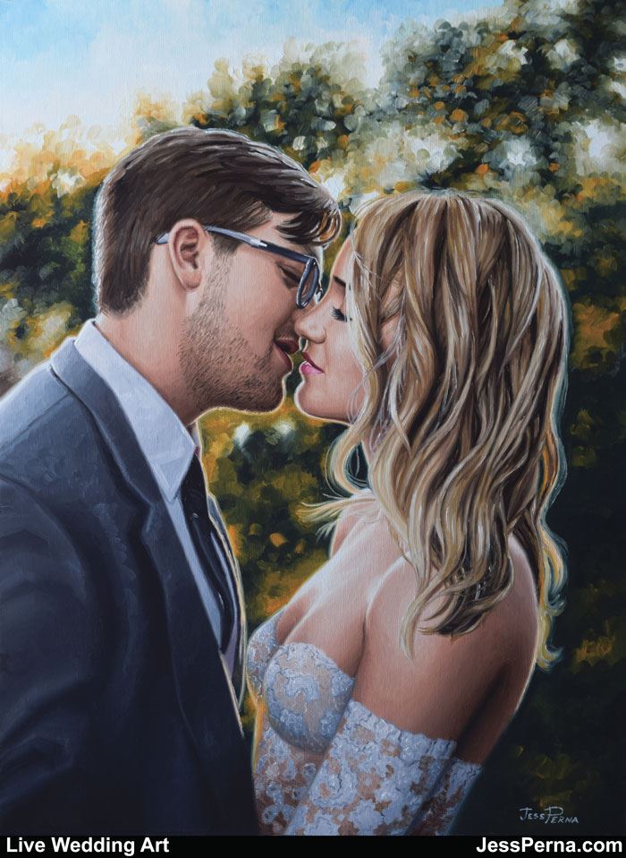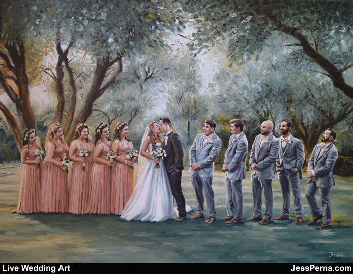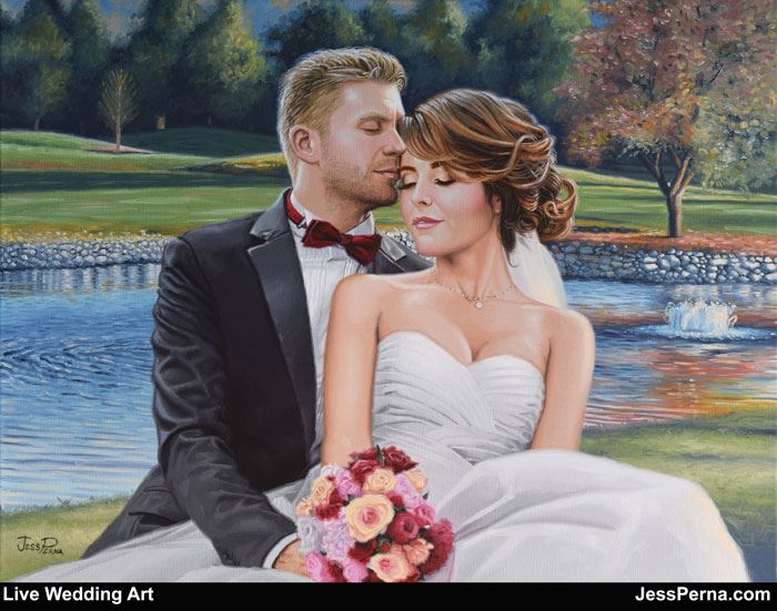 Guests look on as Jess creates a museum quality heirloom painting during a wedding, engagement, anniversary or quinceanera. Jess paints from a photo he takes at the event or from one of your photos. Paintings are started at the event and finished in the studio. Fed-Ex shipping to anywhere in the USA is free. If you are local he will personally deliver it. View the portfolio below to see stunning oil paintings. Decide the pose with the assistance of art director, Judy Cutler who will answer all your questions. Call and talk to us about your wishes.