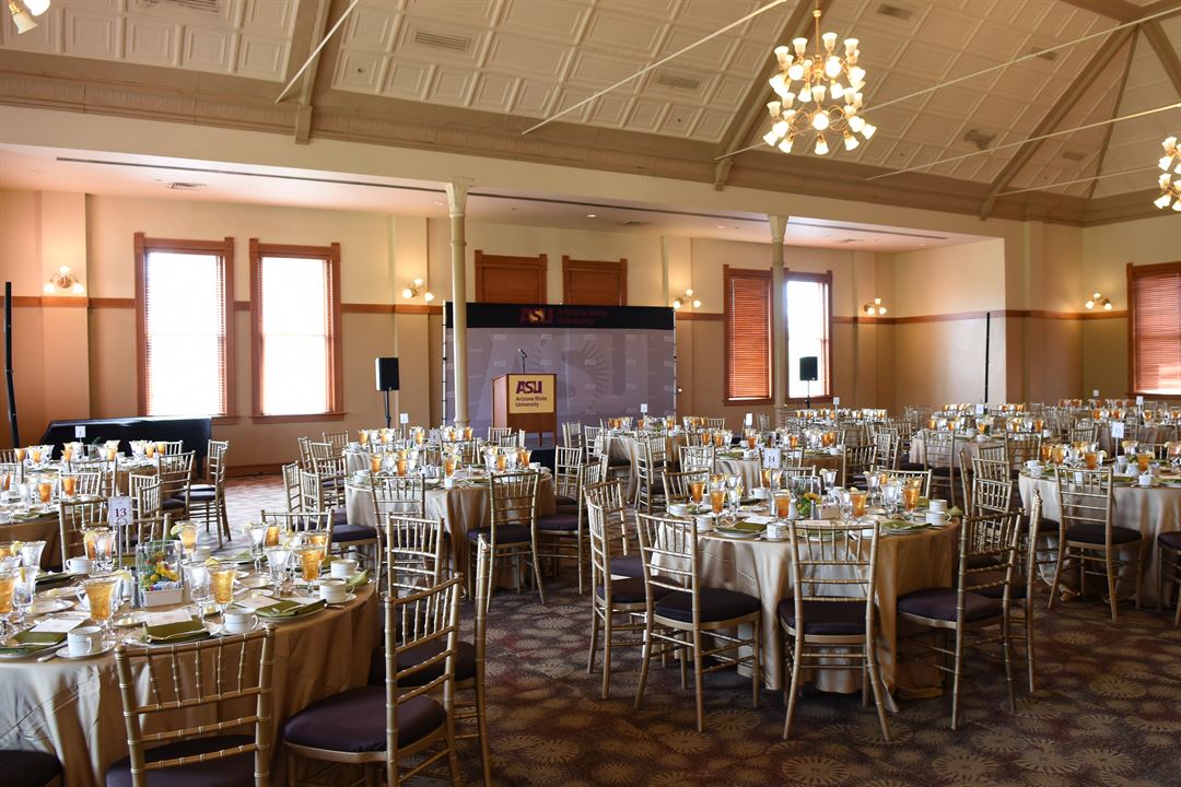 • Carson Ballroom: $3,200 rental. Accommodates 180 with banquet rounds and a dance floor, 200 without a dance floor; 300 reception style. Rental fee includes tables/chairs/basic AV. Rental fees are based on 8-hour rentals and additional hours are billed at $100.00 per hour/per space.