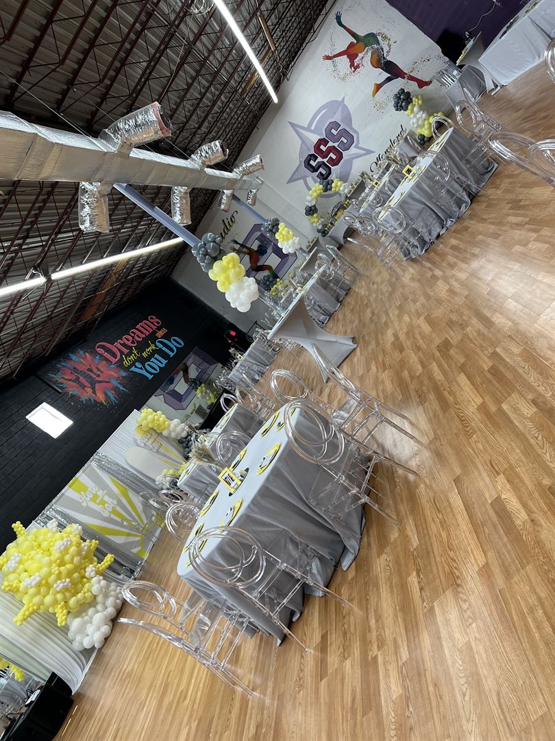 Heat, air conditioning, four bathrooms, banquet tables, chairs and a state of the art sound system available for your convenience.
