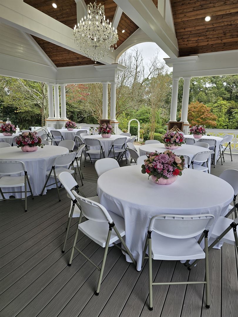 The Woodall House features multiple areas for hosting events. Couples can use the brand new covered event addition for their ceremony and reception as well as the covered front porch. Other events besides weddings are also welcome here. We offer a variety of spaces to host your next event. Our venue creates the perfect ambience for your special gathering. The luxurious interior is designed to host smaller, more intimate events with two parlors, a dining room and a kitchen. Our space can accommodate a variety of gatherings including, but not limited to, baby and bridal showers, graduation and birthday gatherings, as well as book signings, tea parties, and more.