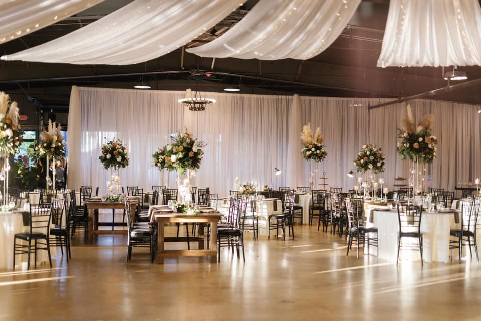 Draping: We provide full room/wall draping, beautifully designed backdrops, canopies/chuppahs, and beautiful ceiling treatments. Make sure you ask about our large assortment of drape colors!