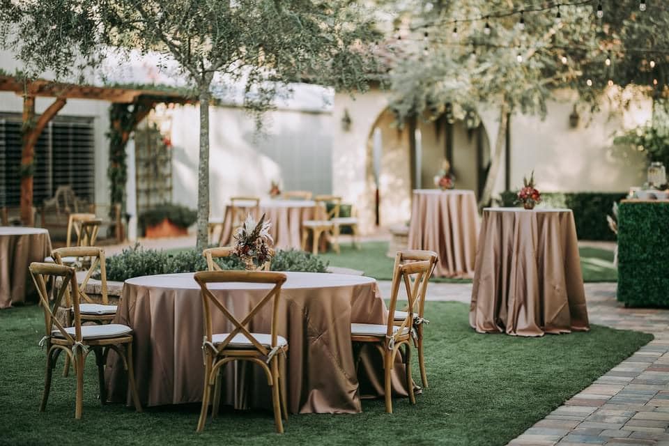 Chairs, Tables, Furniture: You get your pick when it comes to furniture! We have a large assortment of specialty chairs (gold/silver/black/white/mahogany Chiavari chairs, wood crossback chairs, clear napoleon chairs, & white/mahogany folding chairs), various tables (including farm tables), throne seating, vintage/styled furniture, Indian Furniture (wedding swing and ceremony chairs), and more!