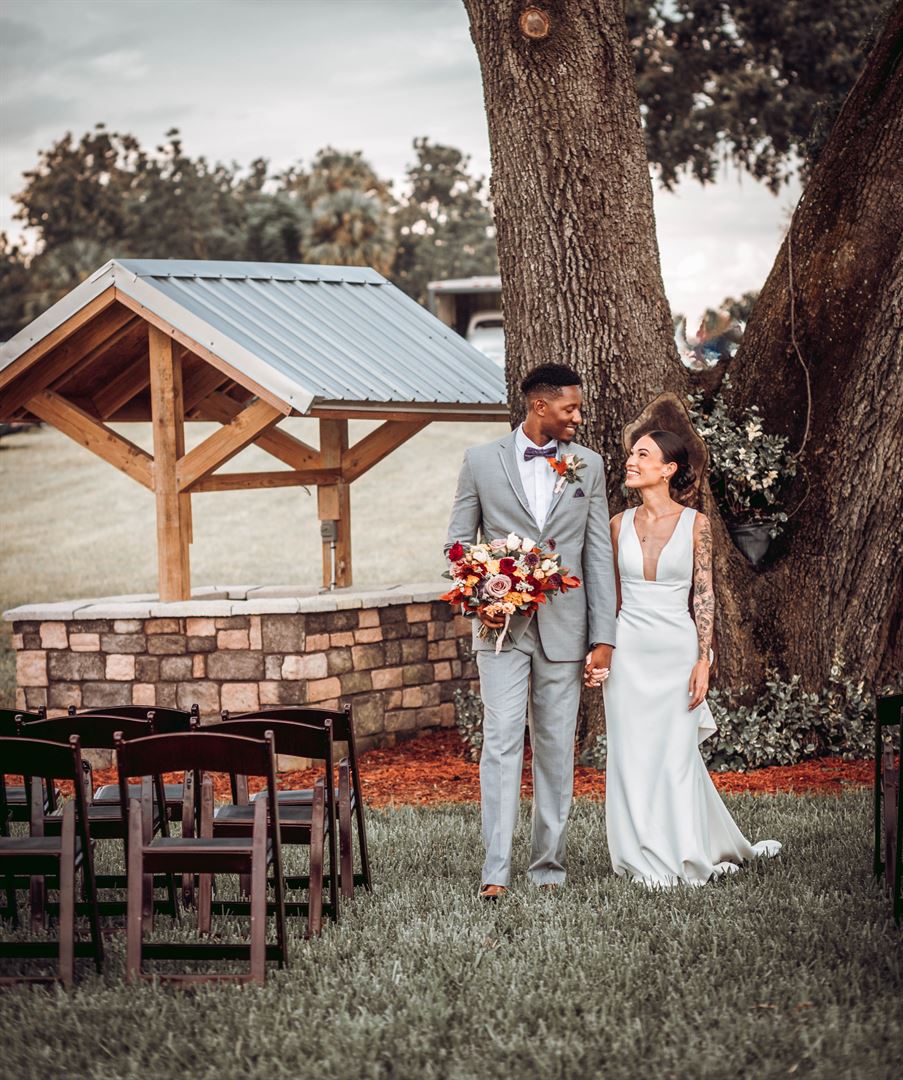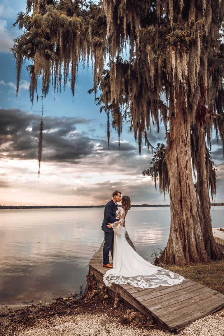 A second ceremony site option awaits you directly across the street from our Farmhouse & Vineyard at our Lakeside portion of the property. A tented space helps to shade the Florida sun for you and your guests at the Lakeside, a great location for those perfect lake, sand, dock, or beach like photos and feels! Not to be forgotten, our Lakeside clubhouse is where our Grooms Bunkhouse is located. Perfect for getting ready all while relaxing by the water!